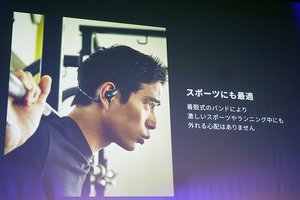 物理的に耳の中にイヤホンを入れない構造により、従来のカナル型イヤホンのような蒸れやイヤーチップの圧迫による耳への負担を軽減する。装着したま会話や家事、運動をするといった“ながら聴き”も楽しむことができる。