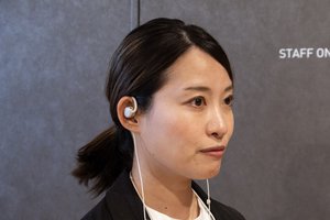 発表会中も磯村氏はMBN001を装着し、音楽を聴きながらトークに臨んでいたが、全く問題なく進行していた。「会話も環境音も聞けるのに音楽も聴こえる不思議な感覚。音のヴェールに包まれるような聴こえ方がする」そうで、「音楽を聴いている状態で記者の皆さんの前に立ったことがないので申し訳ないような感覚もあるが、安心してください、聞こえています」と笑いを誘った。