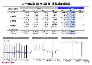 シャープは、2023年度第2四半期の連結決算業績の説明会を開催。同社代表取締役 副社長執行役員の沖津雅浩氏が説明した。