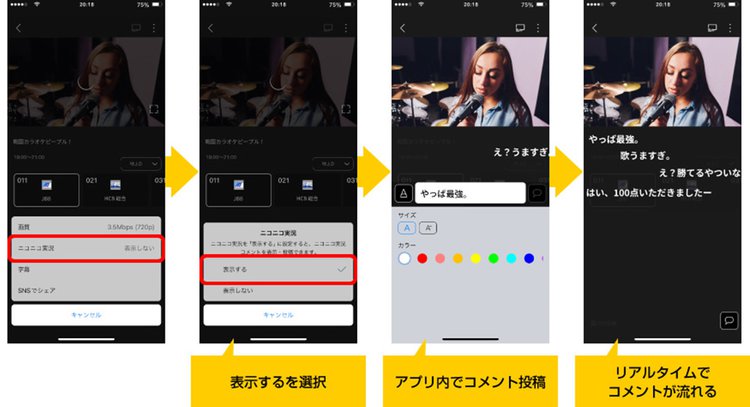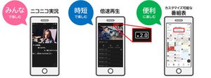 株式会社ドワンゴが提供するリアルタイムコミュニケーションサービス「ニコニコ実況」との連携機能も新たに搭載。視聴画面で「ニコニコ実況」を選択することで、放送中のテレビ番組や起きているイベントに対してコメント表示や書き込みができ、盛り上がりを共有することができると説明する。