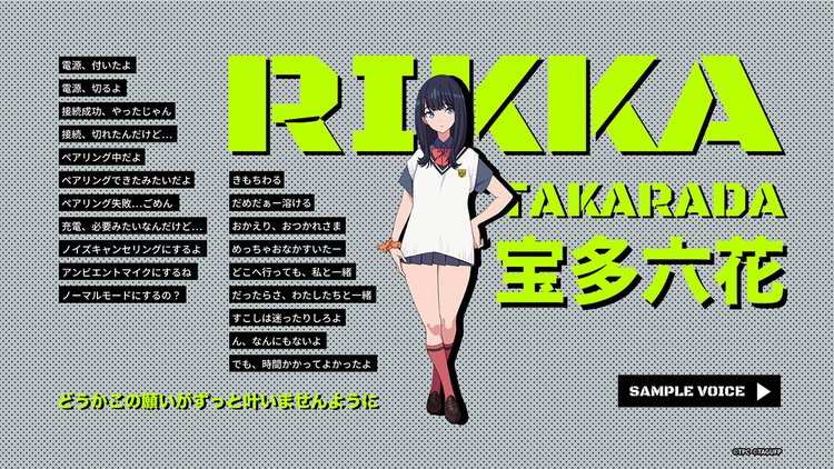 電源ON/OFFなどを通知するボイスガイダンスに加え、劇中の名セリフを再現したスペシャルボイスを宝田六花/新条アカネ/ボラー/南夢芽/飛鳥川ちせ/2代目の6キャラクター分、完全新録で150種類以上を収録。グリッドマンユニバースに登場するキャラクターの声と「いつの日も、どこまでも一緒」だと同社は謳っている。