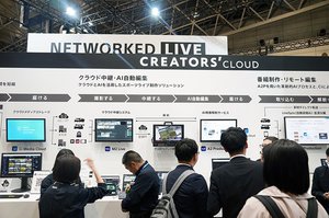 「Creators' Cloud」は、クラウド上での効率的なコンテンツ制作・共有・配信を実現するクラウド制作プラットフォーム。個人向けと事業者向けの2つのサービスを展開しており、同社イメージセンサー搭載カメラによる撮影映像を、クラウドを活用してより円滑な制作ワークフローを実現する。ブース内では、報道やスポーツの番組制作、リモート編集、コンテンツ管理など、利用シーンに沿った最新の制作ワークフローを紹介している。