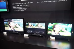 マスターモニターでは、HDR対応の31型4K液晶マスターモニター「BVM-HX3110」は、厳密な色評価やカラーグレーディングが可能で、ライブ制作やポストプロダクションなど幅広い現場で活用できるとのこと。撮影現場に持ち込んで画質確認するのに適した18型マルチフォーマット液晶モニター「LMD-A180」も確認できた。