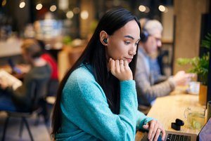ドライバーは14.2mm径のダイナミック型を搭載する。屋外や屋内における音量差に対し、高音と低音を自動調整する「アダプティブイコールラウドネス補正(AELC)アルゴリズム」を採用し、いかなる環境においても常にクリアでバランスの取れたサウンドを実現するという。