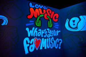 イルミネーションの光とJBLサウンドを楽しめるスピーカー「PULSE」シリーズと「PartyBox」シリーズをフィーチャーし、「暗闇で光と音に包まれる全身没入空間」を再現した体験型イベント。会場に足を踏み入れるとイルミネーションの光がDJブースを照らし、ブラックライトで浮かび上がるLUCKSTOCK(ラックストック)氏による巨大ウォールアートが出迎えるなど、ネオンカラーに包まれた幻想的な空間が拡がる。