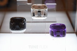 展示エリア中央には、ブランドのフラグシップ完全ワイヤレスイヤホン「TOUR PRO2」、スケルトンカラーが目を引く「TUNE FLEX」、ポータブルBluetoothスピーカー「CLIP 4」のデコレーションモデルをディスプレイ。先日発売されたばかりのWi-Fiスピーカー「Authentics」シリーズ2モデルも会場内に用意する。