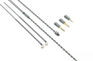 ケーブルにはPCやスマートフォン、DAPやDAC/AMPなど様々な機器と接続できるスワップ式プラグを採用した銀コートOFC(無酸素銅)を採用。3.5mmアンバランス、2.5mm 4極バランス、4.4mm 5極バランスの3つのプラグを付属し、イヤホン側には0.78mm 2Pin端子を備えリケーブルにも対応する。ケーブル長は約1.2m。