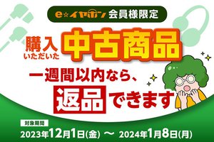 イヤホン・ヘッドホン専門店のe☆イヤホンは、同社直販サイト会員限定で、中古商品の1週間返品保証キャンペーンを実施する。期間は12月1日(金)から2024年1月8日(月)まで。