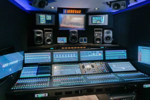車体の外観やサイズはそのままに、内部システムを大幅にブラッシュアップされており、音声卓にはSolid State Logic「System T S500」を搭載し、64chの物理フェーダー、メーターブリッジを採用している。