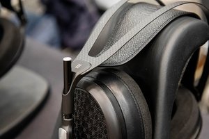 「非常にお客様からの評価の高かったEmpyreanの後継機ということで、非常に力を入れたチューニングがなされています」とスタッフも語る。ぱっと見のデザインは共通だが、グリルの文様が変わっているほか、イヤーパッドもアルカンターラとレザーを使用した「Duo earpads」に変更されている。