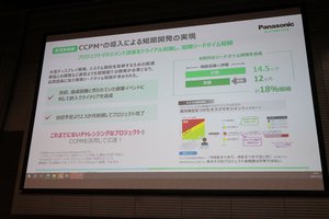 そのほか開発について、同社は「CCPM(クリティカルチェーン・プロジェクトマネジメント)を採用した」と説明。「タスクを分解して、この中から優先順位付けをして、何をすべきか・何をすべきでないかを判断」したという。その結果、計画の14.5か月から約18%短縮、12か月の短期開発を達成したとアピールした。