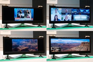 さらに従来品よりも額縁幅を42%削減。具体的には、従来の72mmから42mmに減らしている。狭額縁化を実現するため、液晶パネルの構造自体から見直しており、液晶開発のための専門チームも結成したとのこと。意匠パネル/表示部の固定構造を背面固定方式(従来は液晶パネル周囲固定方式)へと変更したり、素材面でもダイキャストを採用したりするなどの対策を行った。