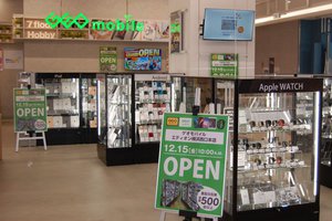 通信費の相談などモバイルライフをトータルに提案。スマートフォンやアクセサリー類の品揃えが充実するのはもちろん、ゲオとの提携により、中古スマホの販売・買取を行うゲオモバイルも併設する。