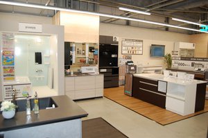 “地域最大級”を謳うリフォームコーナーは、比較・検討が行いやすいようにメーカーごとにブースを設けて展示する。生活雑貨にもスペースを割き、ニトリとコラボしたトータルコーディネートによる暮らしに密着した提案を行う。