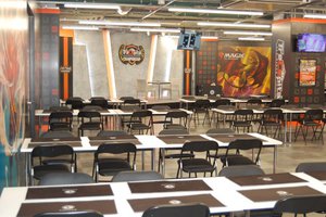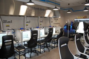 エスカレーターを上がると大きなLEDウォールが目の前に拡がる家庭用ゲームとeスポーツが融合したフロアには、合計8台のゲーミングスペースからなるゲーム対戦場「オクタゴン」が出現。エディオンなんば本店、エディオン京都四条河原町店など他の大型店と連動したネット対戦などのイベントも計画されている。