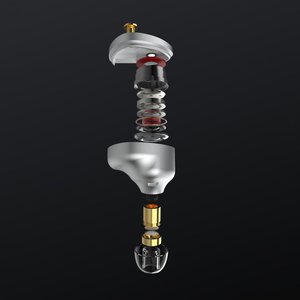 音響ノズルには金メッキを施したCNC真鍮部品を使用。先端には簡単に取り外しできる固定具があり、目詰まりを防止する音響フィルターを簡単に交換できる。プレッシャーベントには新開発の分散式ディフレクター構造を採用し、耳甲介腔に遮られることによる音への影響を抑制する。