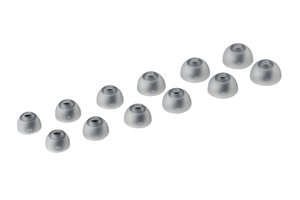 サイズのラインナップは、SS/S/MS/M/ML/Lの6種類を展開。3サイズ/各1ペアセット(SS/S/MS、S/MS/M、M/ML/L)、または1サイズ/2ペアセットにて販売する。軸穴の内径はφ3.6mm(最小部)。さらに、ノズルの細いイヤホンに取り付けるための細軸ノズルアダプターも同梱する。