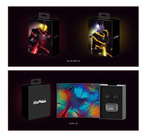 デザインはブラックをベースに、充電ケースとイヤホンフェイスプレートに「SMART BRAIN」のロゴを配置。携帯電話やデジタルカメラといった実際のガジェットを、変身アイテムや武器のモチーフとしたライダーズギアの魅力を表現。劇中の世界観にマッチしたデザインに仕上げた。