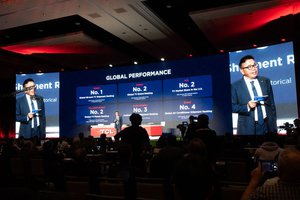 なおプレスカンファレンスの冒頭には、TCLの創業者で会長を務める、李東生氏が登壇。CES2024のTCLブースはこれまでで最大の規模になることとアピールしつつ、98インチテレビの世界出荷台数1位(2023年第1四半期)、グローバルのテレビブランドランキングで2位(2023年第1四半期)など、ブランドの成長を誇っていた。