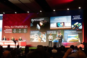 そのほか、質量60gのARグラス「RayNeo X2 Lite」をアナウンス。さらにモバイル端末からは、紙のような表示をアピールする液晶ディスプレイの新バージョン「NEXTPAPER 3.0」を搭載するモデルとして、タブレット「TCL NEXTPAPER 14 Pro」「TCL TAB 10」、スマートフォン「TCL 50XL」「TCL 50XE 5G」が披露された。