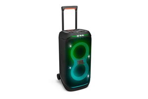 「JBL PartyBox Stage 320」は、伸縮式ハンドルと幅広で頑丈なホイールを装備し、様々な場所に手軽に持ち運んで使用できるモデル。高感度ウーファー×2基とデュアルトゥイーターを搭載し、迫力ある大音量再生や多次元のライティング演出を実現する。