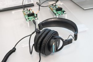 AKMは半導体部品やセンシングデバイスの製造を行っており、それらデバイスが今回のデモ車にも搭載されている。ブースでは、昨年12月に発表した車載用オーディオDSP「AK7018」「AK7017」が評価ボードに載せられた状態でも展示されており、ヘッドホンでサウンドを楽しめるようになっていた。