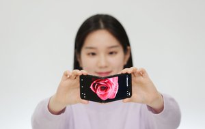テレビ以外のパネル技術も豊富に紹介されている。独自の内外折りたたみ技術により360度の折りたたみに対応した、携帯電話デザインの折りたたみ式デバイス「In&Out Flip」もその1つ。従来の折りたたみ型デバイスでは、折りたたんだ際に情報を表示するために、外側にも追加のパネルが必要となるが、In&Out Flipでは外側に折りたためるため、より薄くデザインできているという。