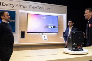 家庭向けでは、TVの新機能として「Dolby Atmos FlexConnect」を展示。これは2023年のIFAで発表された新機能で、対応テレビとワイヤレススピーカーを連携させることで、テレビの内蔵スピーカー+ワイヤレススピーカーでDolby Atmos音場を構築できるというものだ。
