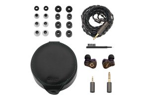 イヤーチップは、シリコン素材のものを3サイズ(S/M/L)各2ペアずつ、フォーム素材のものを3サイズ(S/M/L)各1ペアずつ用意する。周波数特性は20Hz - 20kHz、感度は112±3dB、インピーダンスは12Ω。本体質量(ケーブル含む)は約35g。ほか付属品として、本革製キャリーケースなどを同梱する。