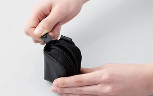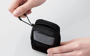全周ファスナーで180度の開閉が可能なイヤホンを取り出しやすい仕様としている。ファスナーの取手にはつかみやすい熱収縮チューブで閉めた2mmのパラコードを採用。カラビナは幅の広いベルトにも簡単に取り付けることができるスクエアタイプを採用し、取り付ける際にベルト部分が折り曲がることでの負担も抑えるとのこと。