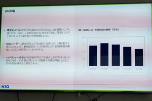 薄型テレビは、2年連続の二桁減となり前年比11%減の470万台で、薄型テレビが主流になってから最も低い市場規模となり、2016年の490万台を下回る結果になった。家電エコポイントやアナログ停波からの買い替え特需が一巡し、その反動が続いていることが原因とみている。