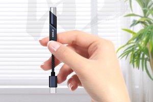 DACチップにCirrus Logic製「CS43131」を採用し、小型軽量ながらPCM最大384kHz/32bit、DSD256(11.2MHz)の再生に対応するUSB-DAC内蔵ヘッドホンアンプ。外形寸法約44.5×9.7×10.5mm、質量約8.5gのコンパクト設計を採用している。