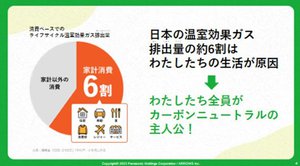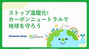 小学校における環境教育は、様々な教科において取り組みが行われている一方、「適切な教材が少ない」「主体的な行動に結びつけることが難しい」などの課題が指摘されているという。パナソニックではそうした課題を解決し、教育現場における教員負荷を低減するため、「Panasonic GREEN IMPACT」をベースに、「ストップ温暖化!カーボンニュートラルで地球を守ろう」と題した小学校6年生の社会の授業に向けたプログラムを制作した。