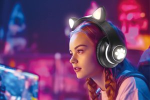 猫耳と肉球マークのデザインを採用したワイヤレスヘッドホン。ヘッドバンド部に備える猫耳とハウジング部に配置された肉球マークがグラデーション点灯する仕様となっており、音楽再生に加えて、ゲームやライブ配信、コスプレといったファッション要素も兼ね備える実用的なアイテムと説明している。