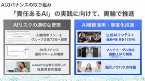 さらにAI倫理ポリシーをグループ企業72社に展開し、e-learningなどを活用して社員教育を徹底するなど、AIリスクの管理に取り組んでいる。一方では積極的にAIを活用し、全社をあげての生成AIコンテスト、マルチモーダル対応の国産LLMの開発、自らをAIを実装する実験場としてノウハウを商品化して外販するなど、「『AIをもっともうまく使う会社』を目指して頑張っている。AIのリスクへの適切な処理と管理とAIの積極的な活用・事業化の推進、この両輪で責任あるAIの実践を進めている」と胸を張る。