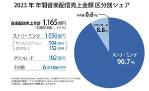 2023年の音楽配信、2年連続で最高売上に。ストリーミングがついに90%超え