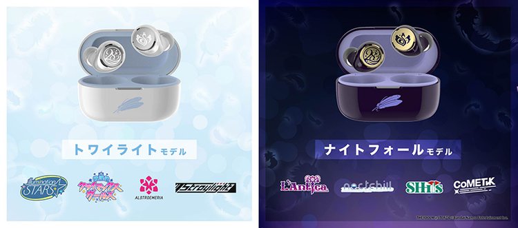 AVIOTの完全ワイヤレスイヤホン「TE-D01v」をベースに、作品の世界観を表現するオリジナルデザインを採用したコラボモデル。淡く柔らかいイメージでホワイトを基調とした「トワイライト」モデルと、激しくロックなイメージのブラックを基調とした「ナイトフォール」モデルの2機種をラインナップする。
