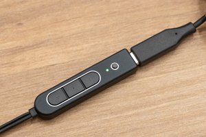 接続端子はUSB Type-Cポートを搭載し、付属のUSB Type-C to Cケーブル(0.2m)を使用してPC/スマートフォンなどと接続する。端子付近はリモコンとなっており、マイクの収音モードを示すLEDインジケーターと収音モード切り替えボタンも配置される。