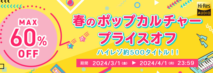 日本のポップカルチャーである「アニメ」「ゲーム」「声優アーティスト」「アイドル」「ネット発アーティスト」ジャンルから選りすぐった約500タイトルのハイレゾ音源が対象となるキャンペーン。