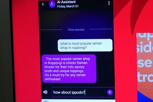 当日は、最新世代「Snapdragon 8 Gen 3」の生成AI機能に関するデモを披露。「六本木でオススメのラーメン屋は?」などのようにチャットで質問すると情報を返してくれるAIアシスタント機能、「ゴッホが描いた東京タワー」などのように指定したキーワードに沿った絵を出力する画像生成機能、そして、スマホで撮影した写真の背景を拡張する「フォトエキスパンション」機能を、実際にその場で試した。