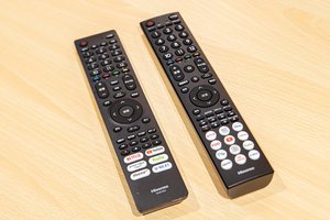 付属のリモコンは2023年発売の同社4K液晶テレビ同様のデザインを採用。裏面にはドット状の滑り止め加工が施され、Bluetooth対応によりテレビに向けなくても操作が可能。音声でテレビ操作が可能な「VIDAA Voice」をサポートするなど使い勝手を向上させている。VODサービスを直接起動できるダイレクトボタンは12ボタンを備え、4Kエントリー機「A6K」からさらに2ボタンが追加されている。