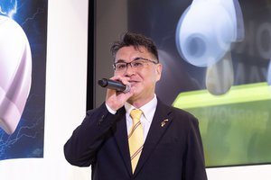 発表会では最初に、明治のグローバルカカオ事業本部 カカオマーケティング部長の相澤 幸保氏(きのこ派)が登壇。