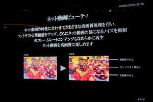 高画質エンジンは、2024年版「レグザエンジン ZR」が採用されており、同日発表されたハイエンド・4Kテレビ群と同等のものが投入された。ネット動画の特性に合わせた精細感/コントラスト/色階調の向上、併せてノイズ制御やフレームレートの低いコンテンツでも滑らかに再生する「ネット動画ビューティ」、ネット動画で発生す圧縮ノイズやバンディングを抑制する「ネット動画バンディングスムーサー」といった高画質技術を使用可能だ。