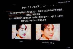 高画質機能では、人肌の立体感や質感の向上、黒ずみや白飛びの抑制、撮影環境によるカラーシフトへの処理などによって、自然な人肌の表現を可能とする「ナチュラルフェイストーン」や、「32色軸カラーイメージコントロール」も搭載する。