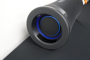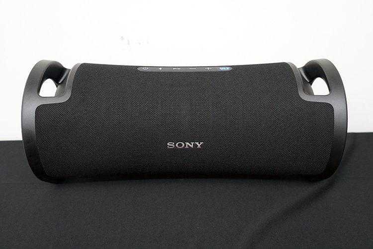 スピーカー上部にULTボタンを配置。深い低域を強調する「ULT1」、よりパワー感のある重低音を再生する「ULT2」、そしてULTオフの全3段階のサウンドモードを搭載し、ULTボタンを押すことで1段階ずつモードが切り替わる。デフォルト設定はULT2で、専用アプリ「Music Center」からも切り替えが可能だ。