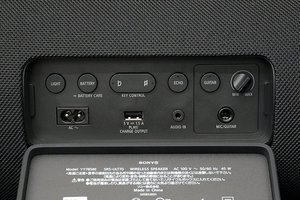 本体背面部にキーコントロールやマイクのエコーボタンを備えるなど、新たにカラオケ機能を搭載。入出力端子はマイク/ギター入力×1基、オーディオ入力×1基、音楽再生と、接続デバイスへの給電に対応するUSB×1基を装備する。