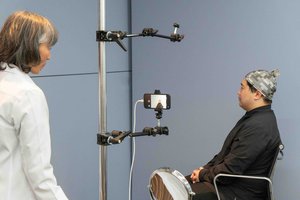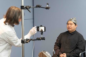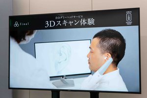 同社は完全ワイヤレスイヤホン「ZE8000」に連動したサービスとして「自分ダミーヘッドサービス」を展開しているが、「自分ダミーヘッドサービス3Dスキャン体験」では3Dスキャンのデモが体験できる。ユーザー個別でダミーヘッドを作成する際に、ユーザーの身体や耳の形をどのように測定しているのかがわかるようになっている。