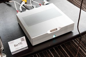 ブースでは、DAVEと「Choral Ensemble Stand」がセットになっており、アップスケーラー「Hugo M Scaler」やパワーアンプ「BerTTi」を組み合わせて、スピーカーによる試聴が可能になっている。