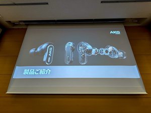 説明会はAKG製品を取り扱う、ハーマンインターナショナルのブランドアンドコーポレート広報担当の石原嘉範氏による進行で実施。AKGブランドでのフジヤエービック主催イベントへの出展は今回6年ぶりとのことで、新製品の発表を前に一般来場者へ向けてハーマンインターナショナル全体の取り組みや、AKGの成り立ちやブランドフィロソフィーを解説した。