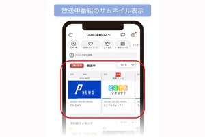 「ホーム画面」は、番組ごとにサムネイル表示される仕様になった。従来までは「現在放送中の番組」のカテゴリーで電子番組表による放送局のアイコンのみの表示になっていたが、番組のサムネイル表示に対応したことで、すぐに視聴したい放送番組を見つけやすくなったという。